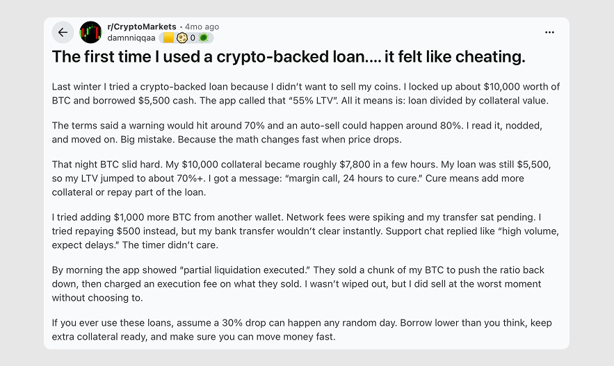 That Reddit user learned the hard way: assume a 30% drop can happen any random day. Borrow lower than you think. Keep extra collateral ready. Make sure you can move money fast.