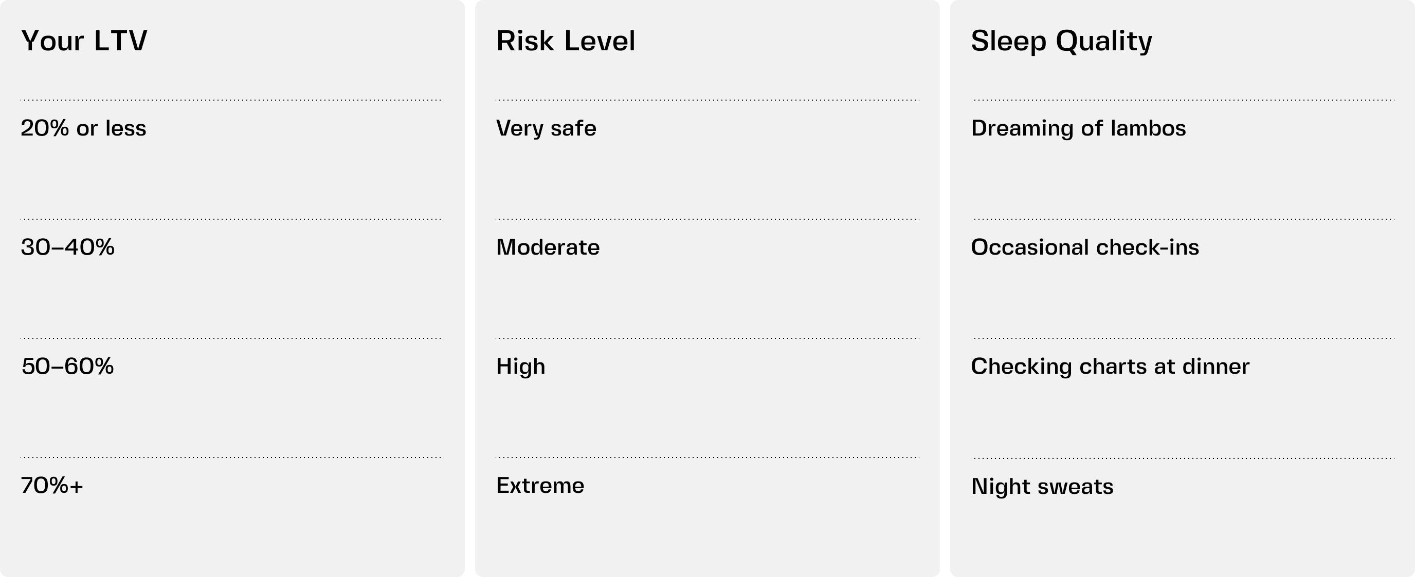 - LTV is everything — lower = safer; 20–30% is the sweet spot.