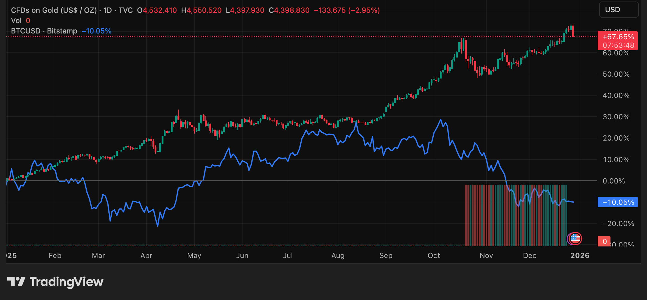Yet the notion of Bitcoin’s four-year price cycles proved difficult to map onto a maturing asset. Furthermore, its mantle as “digital gold” was tested by the precious metal itself, rallyingthroughout the year and eventually shattering a record $4.5k.