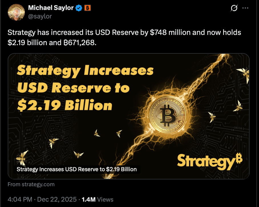 Furthermore, the firm set aside a $1.44 billion reserve from ATM equity proceeds (later expanded to $2.19 billion) to ensure dividend payments for at least 12 months. Yet it could no longer function purely as a leveraged wager on Bitcoin.