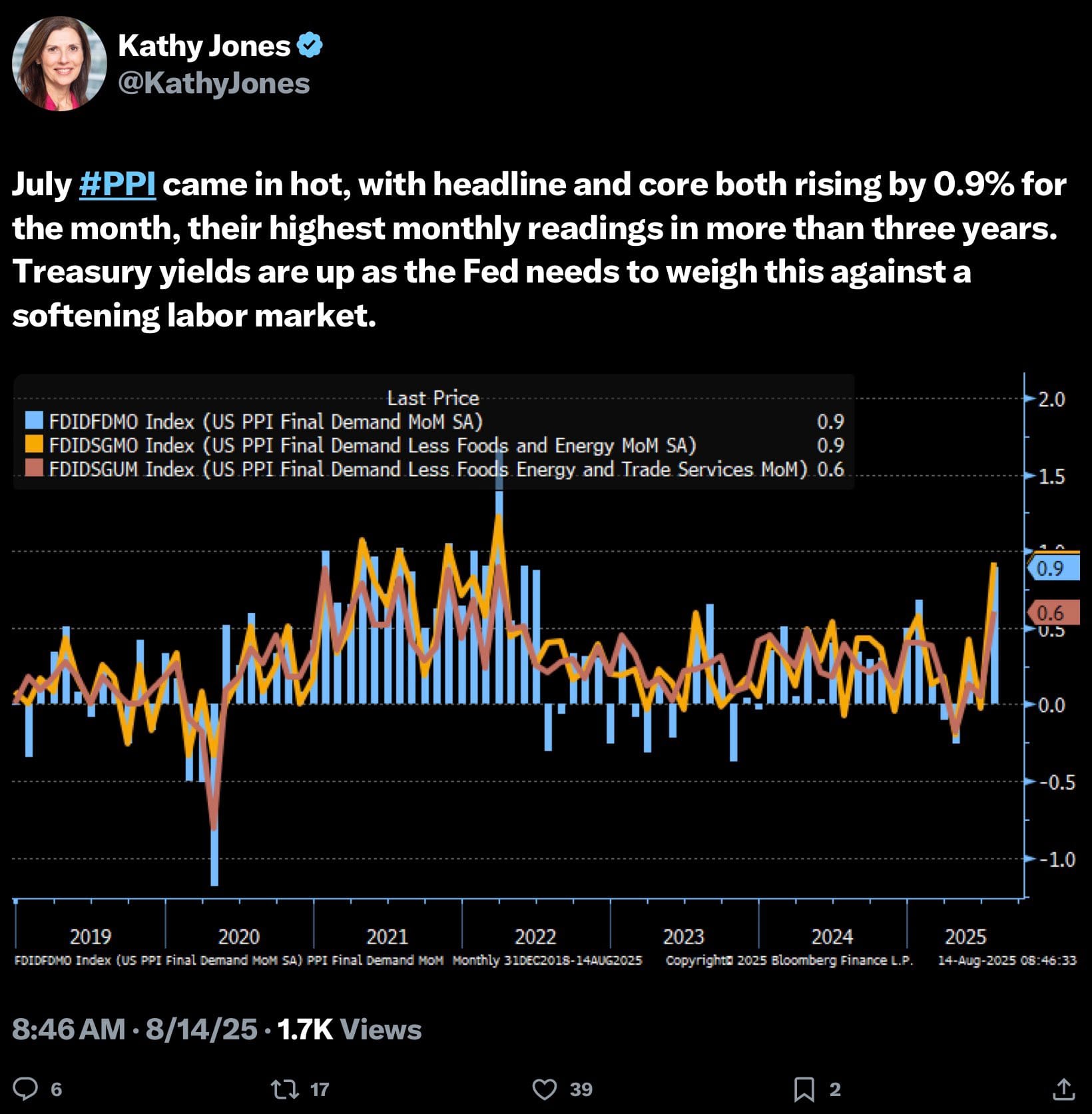 Last week, a hotter-than-expected report on July wholesale inflation (PPI) reignited macro concerns. Despite a dramatic weakening in the job market — including downward revisions totaling 258,000 jobs in May and June — a Fed rate cut is no longer seen as a certainty.