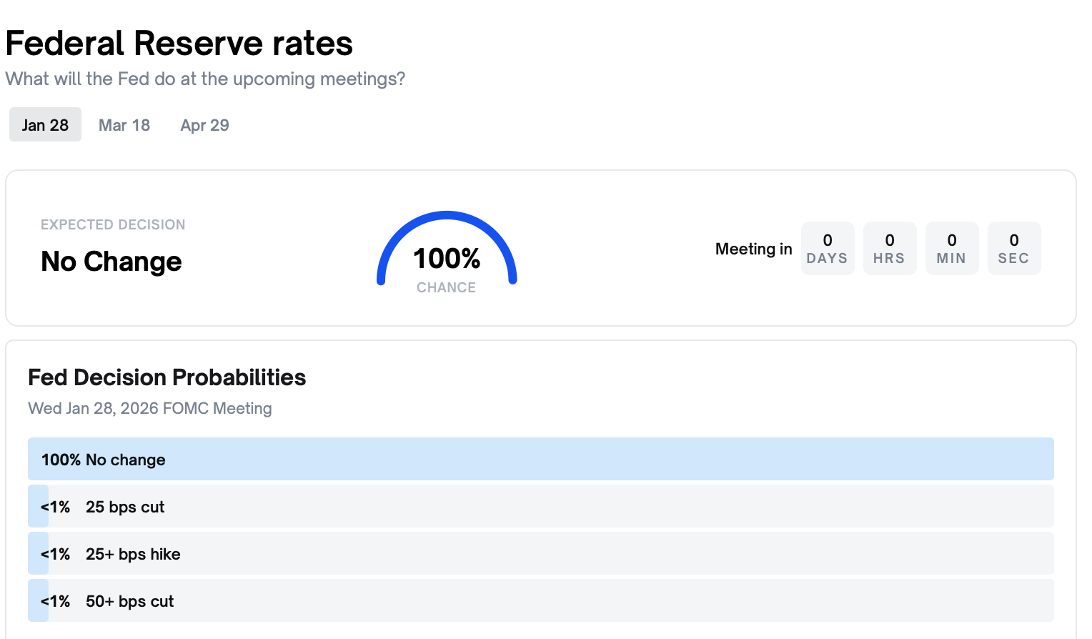 Based on market expectations and policymakers’ comments, the Fed is likely to keep its benchmark interest rate unchanged. CNBC projects near-term caution from the agency "as a series of cuts made last year work their way through the economy." Traders will focus on future guidance in Fed Chair Jerome Powell's post-meeting press conference.