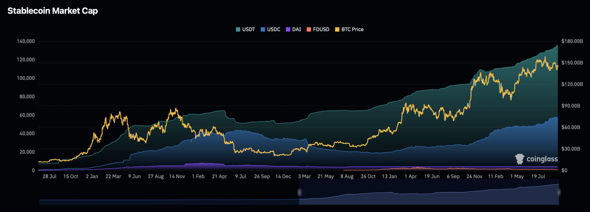 - USDT's dominance has shrunk to 60.4% from 67.5% at the start of the year.