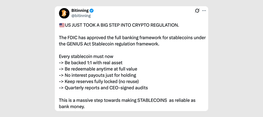 The FDIC approved new prudential standards for stablecoin issuers on Monday, firing the starting gun for Wall Street banks preparing to enter a market now worth over $323 billion. The vote advances the second phase of rulemaking under the GENIUS Act, signed into law by President Trump last July.