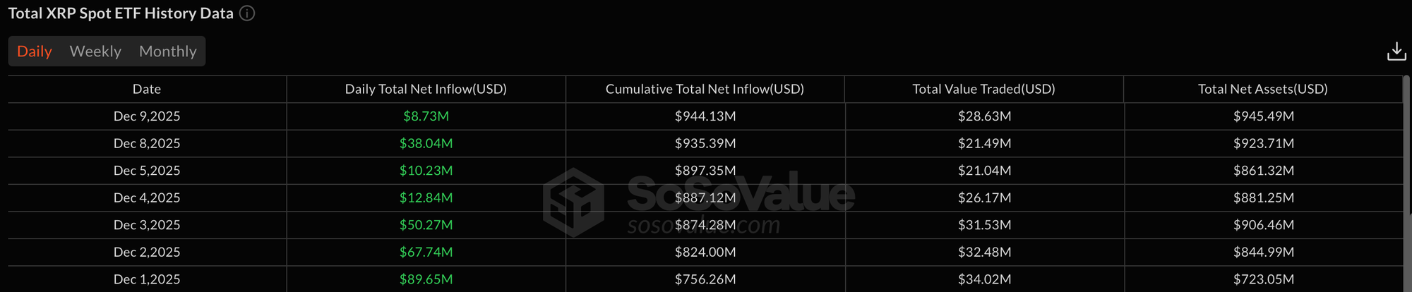 The move coincides with a favorable shift in regulatory momentum. Following the clarity from Ripple's court case with the SEC, US spot XRP ETFs have neared $1 billion in inflows.