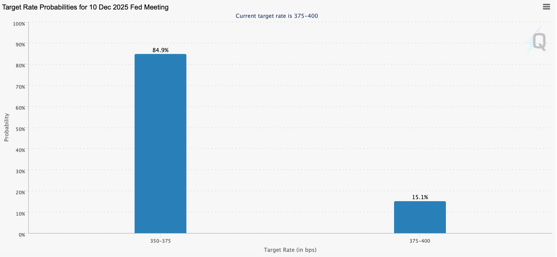 Previously, the odds dropped as low as 33% after the Bureau of Labor Statistics (BLS) canceled the October jobs report — due to the record government shutdown, no payroll or employment data were collected.