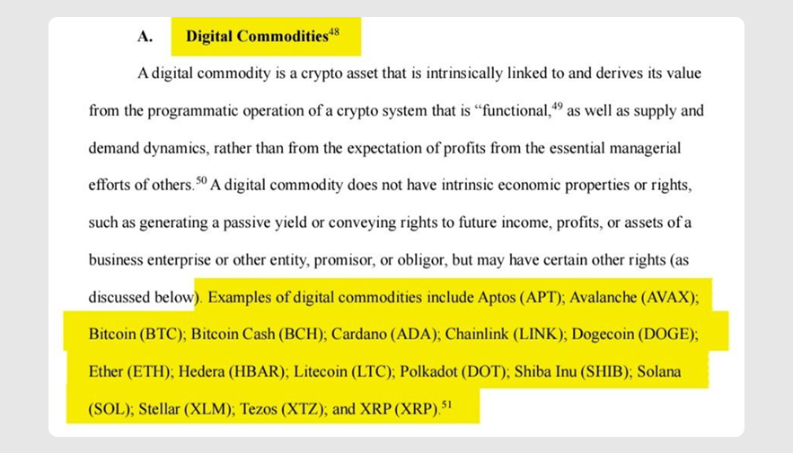- Digital commodities — including major tokens like Bitcoin, Ether, Solana, XRP, and Avalanche — are deemed non-securities, falling under the CFTC's purview.