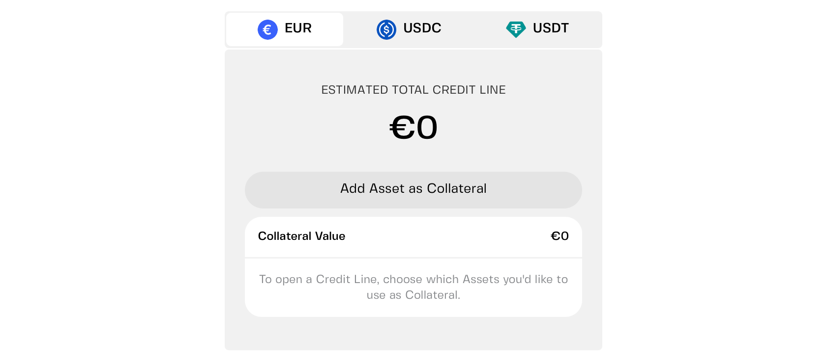 - Crypto credit line: Revolving access to funds. Draw only what you need and pay interest only on what you use. No fixed schedule or monthly minimums.