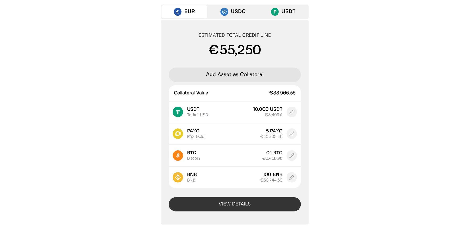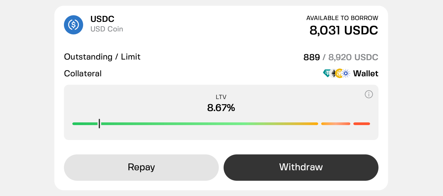 Combined with the ability to draw EUR via SEPA or stablecoins, this makes it closer to a flexible liquidity tool than a traditional loan.