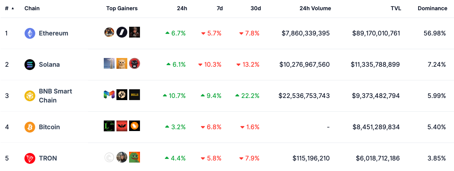 Let's be real: despite its growing pains, Ethereum still commands the blockchain TVL (almost 57% share). However, BNB Chain and Solana are currently stealing the spotlight in 24-hour trading volume, as of October 13, 2025 ($22.5 billion and $10.2 billion, respectively, versus Ethereum’s $7.8 billion).