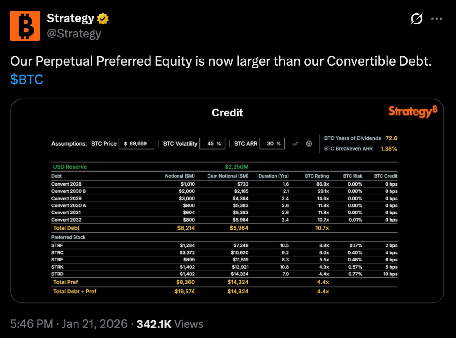 According to the company's own Q4 presentation, it became America's largest issuer of preferred stocks in 2025, raking in $7 billion from those offerings — or a third of every dollar raised on Wall Street. That figure has now climbed to $8.36 billion, according to the company's January X post.